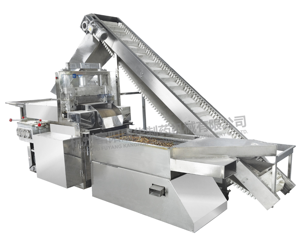 工作原理:原料通過往復(fù)式切藥機切制后自動進入振動篩,經(jīng)篩選后,超大的產(chǎn)品進入輸送帶,自動返回到切藥機進行二次切制,直至符合規(guī)格要求。